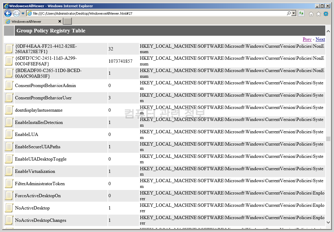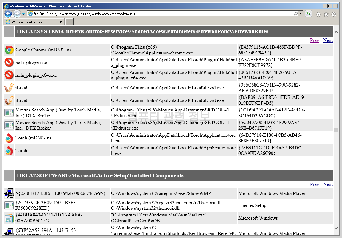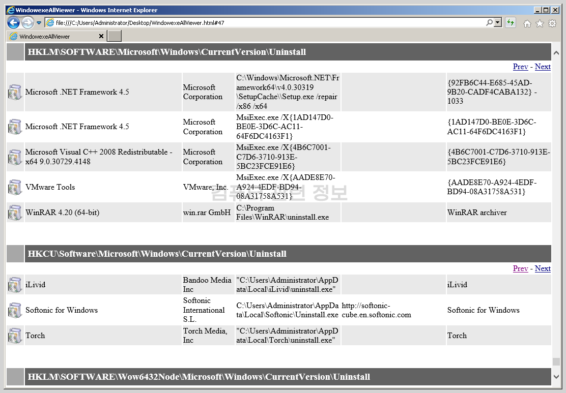 아래 스크린샷은 일부이며, 설치된 프로그램이 많으면 상당히 긴 페이지가 나옵니다.