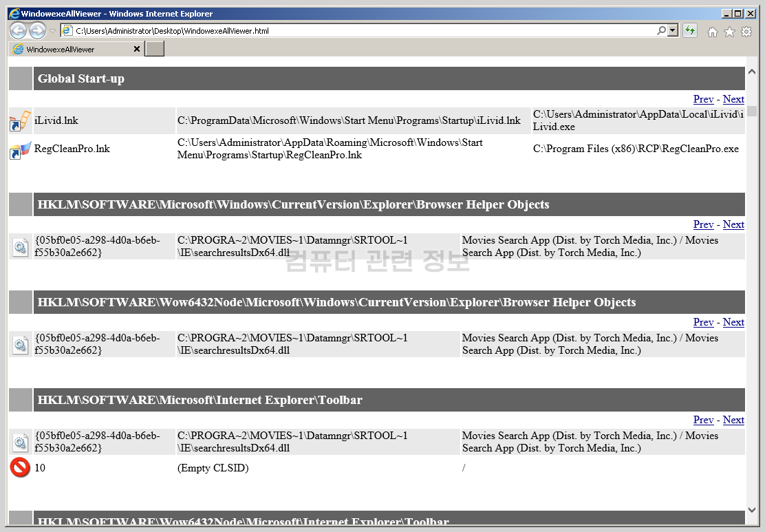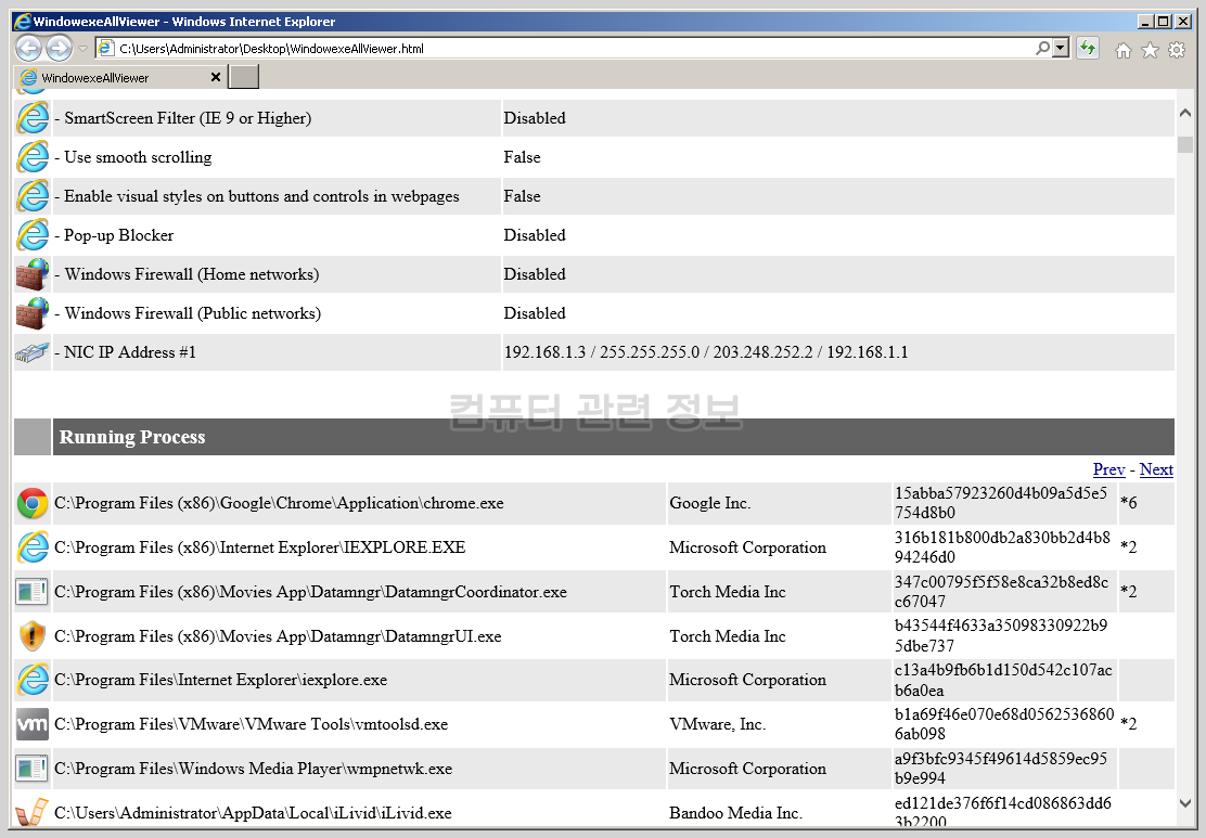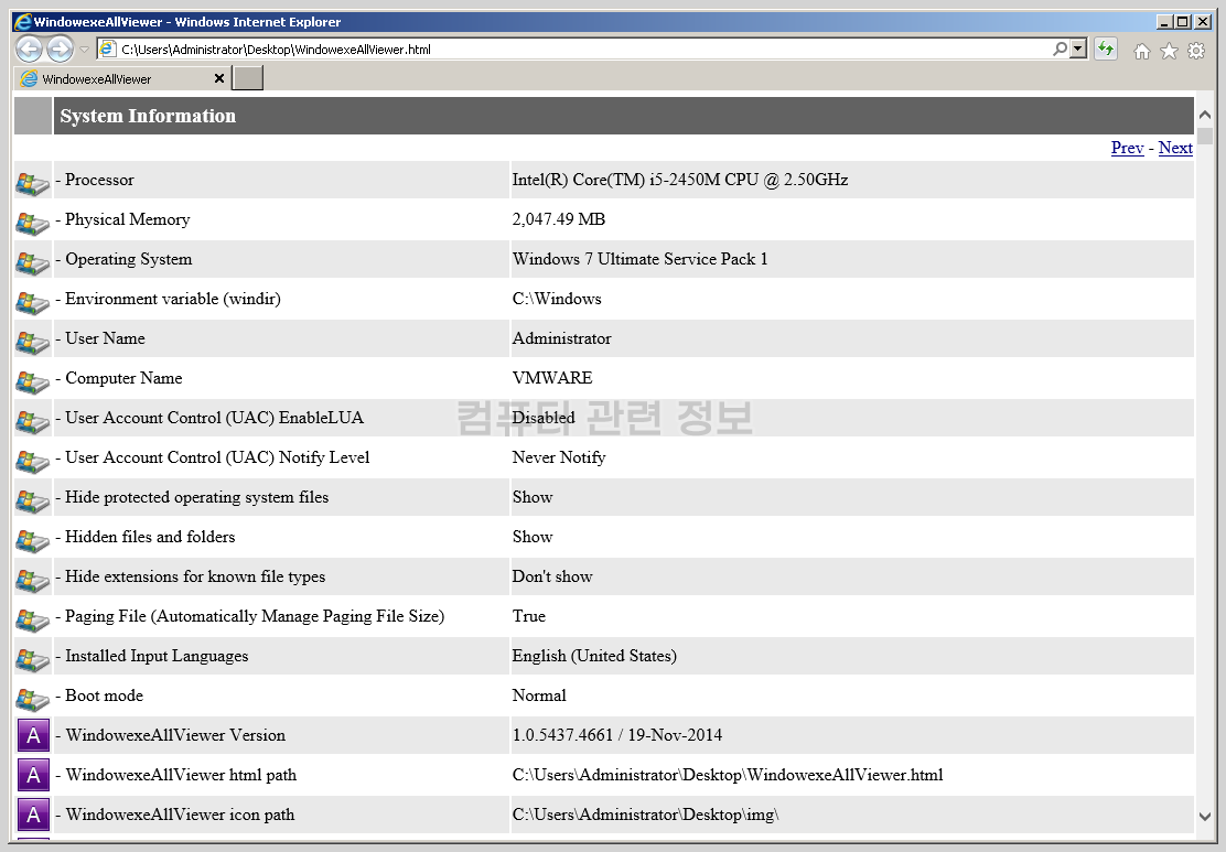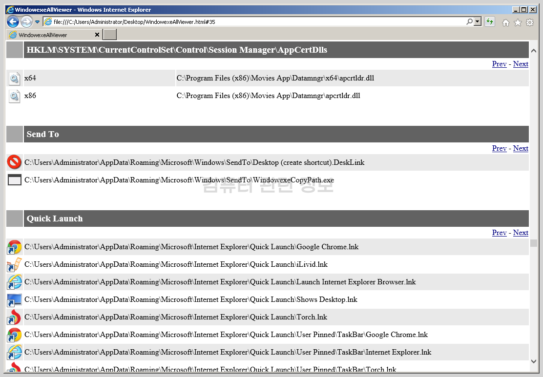 애드웨어나 악성코드 분석이 필요할 때에 시스템의 상세정보를 분석해서 html 파일로 저장하는 자작 프로그램입니다.