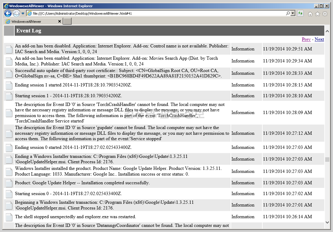 기본적인 하드웨어 정보, 운영체제 정보, 실행중인 프로세스, 부팅시 자동으로 실행되는 프로그램, 윈도우 서비스, 작업 스케쥴러, 탐색기 쉘메뉴, 크로미움 웹브라우저 확장 프로그램 목록, 방화벽, 그룹정책, 시스템 폴더 목록, 이벤트로그, 시스템에 설치되어 있는 프로그램등, 각종 다양한 정보를 html 문서로 저장합니다.
