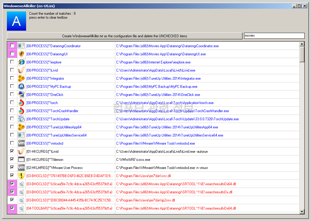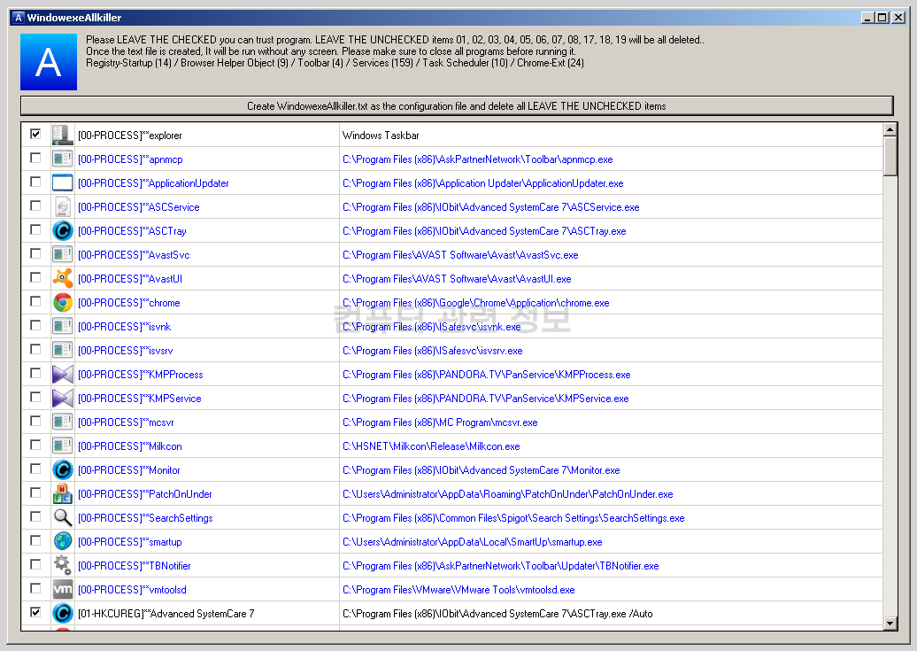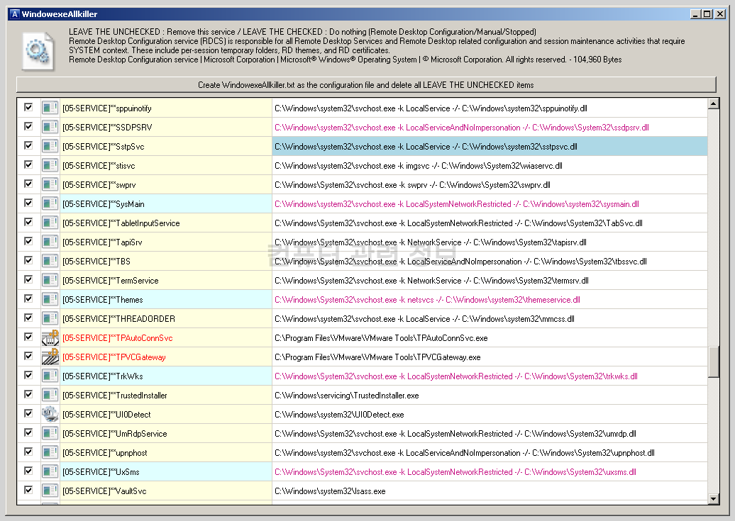 특히 WindowexeAllkiller.txt 설정파일은 절대로 올리지마세요.
