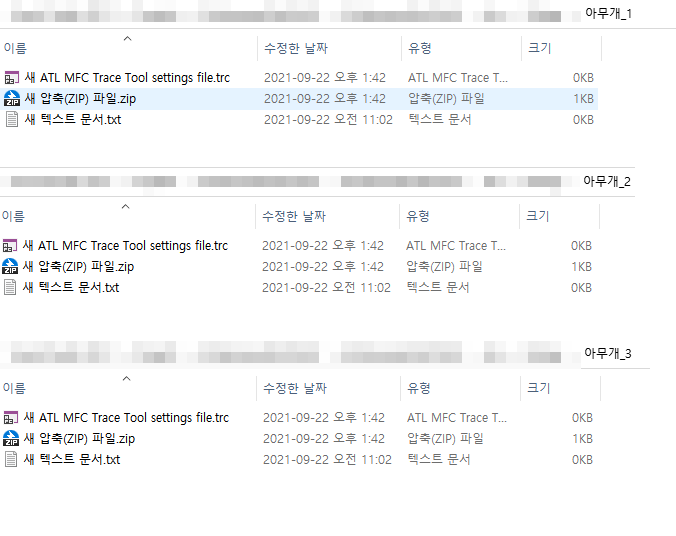 탐색기에서 복사한 파일이 각 폴더에 붙여넣기가 된 스크린샷입니다.