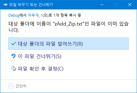 복사하고자 하는 폴더에 대상 파일이 존재하면 확인 메세지가 표시됩니다.