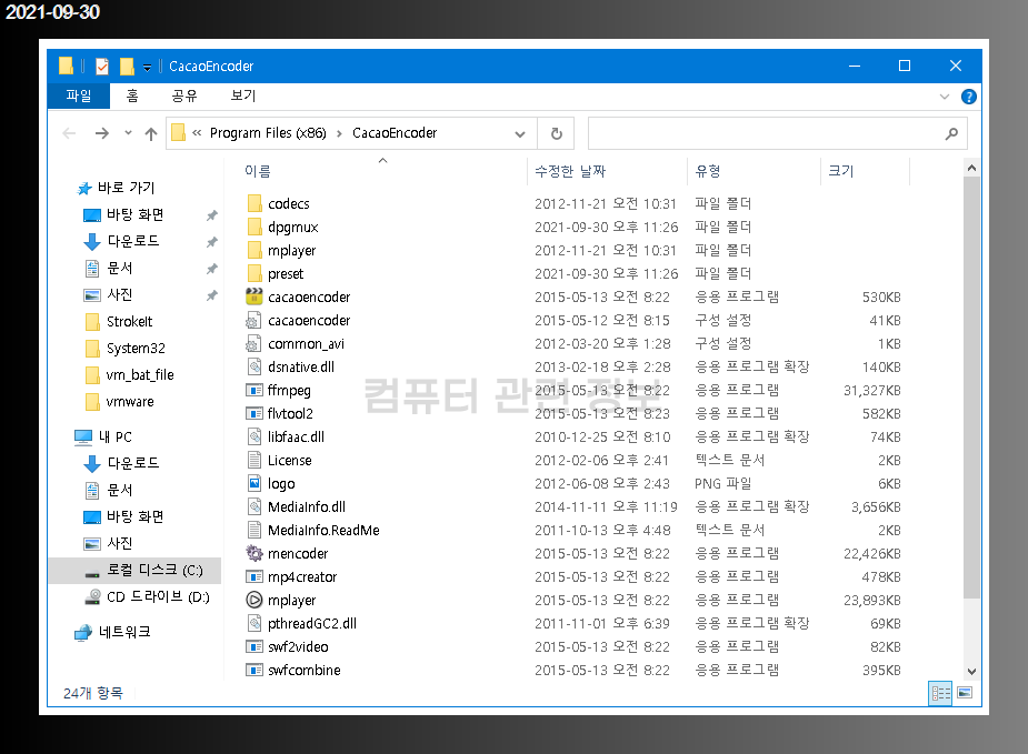 프로그램 삭제 정보 : C:\Program Files\CacaoEncoder\\Uninstall.exe