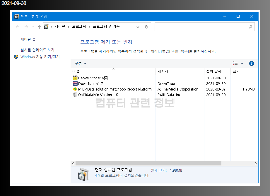 제어판 - 프로그램 추가/제거에 등록된 목록