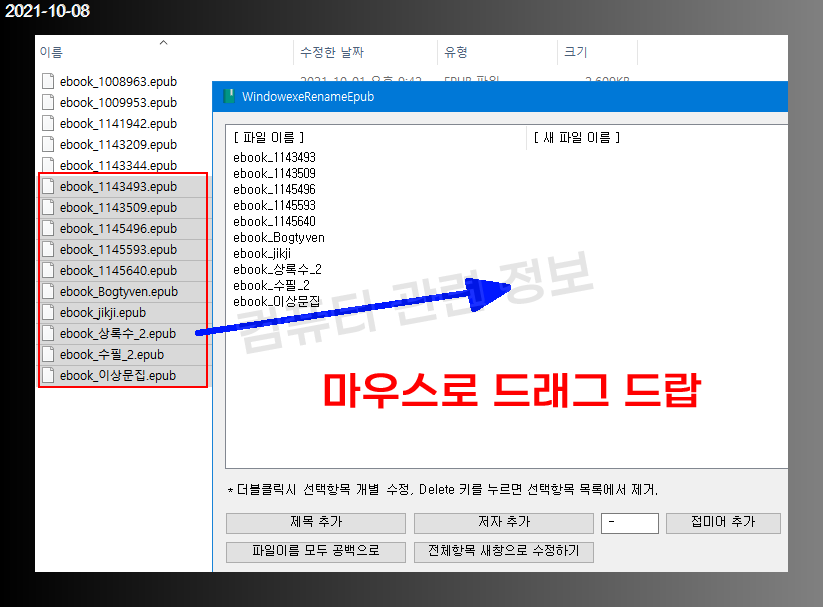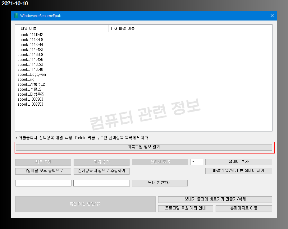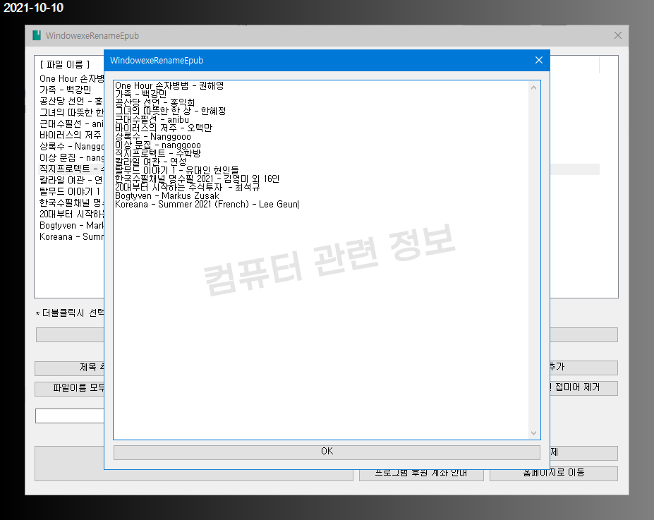전차책의 메타정보(저자,제목, 출판사)를 읽어와서 파일의 이름을 일괄 변경할수 있는 자작 프로그램을 소개하고자 합니다.