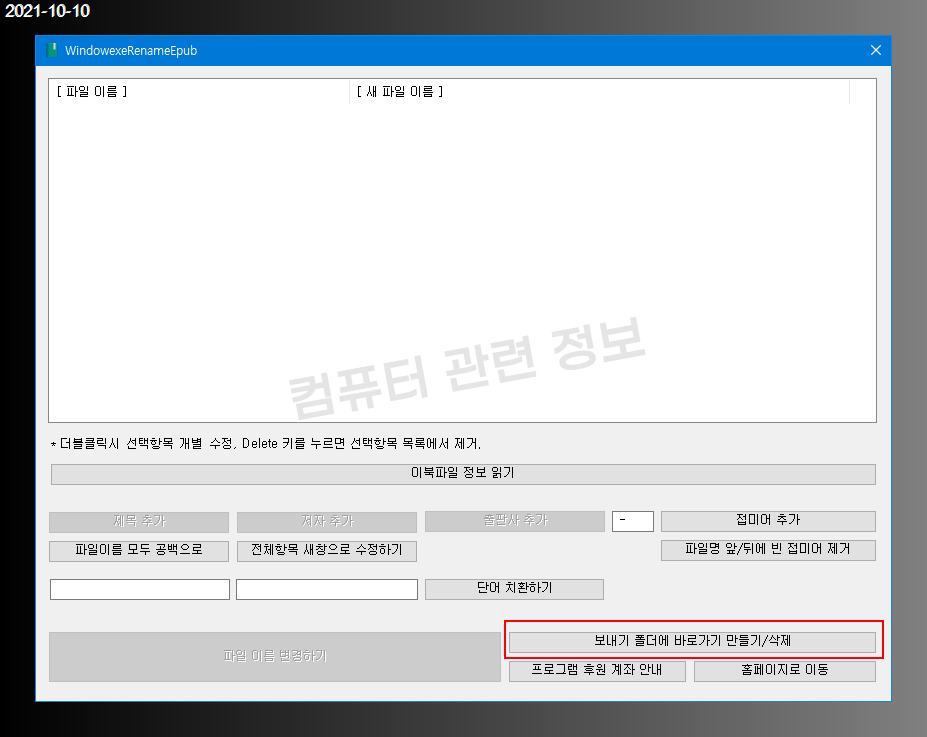 파일명은 변경하지 마세요. WindowexeRenameEpub 이 아니면 실행이 되지 않습니다.