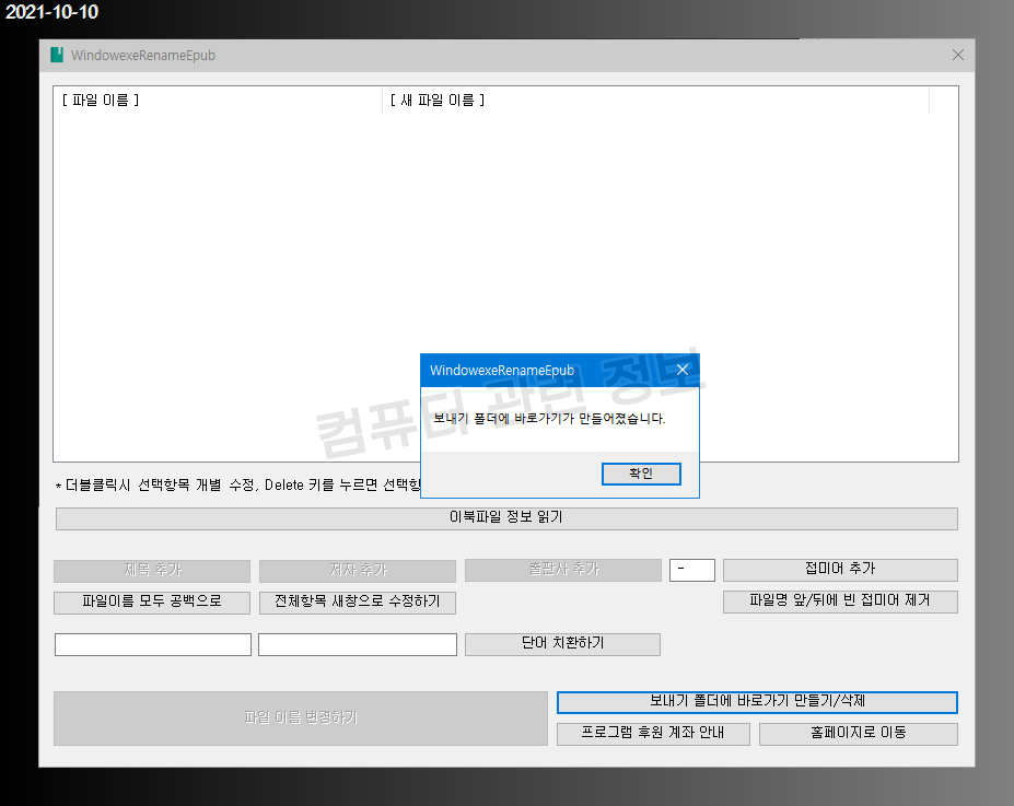 파일 이름 변경하기를 클릭하면 작업 완료 메세지가 나옵니다. 확인을 클릭하세요.