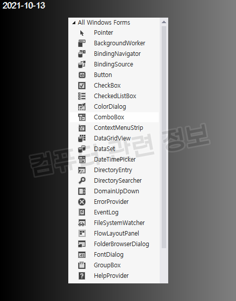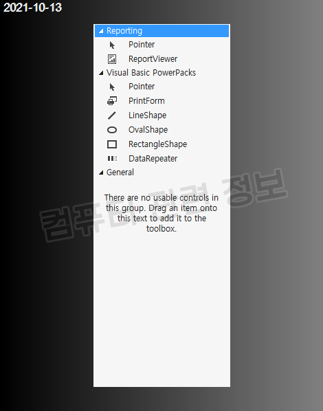 툴박스에 없는 항목은 마우스 우클릭해서 콤포넌트를 수동으로 추가하시면 됩니다.