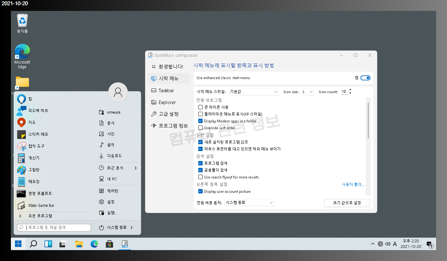추가. StartAllBack 이라는 프로그램도 있는데 이 프로그램은 유료입니다. (4.99달러)