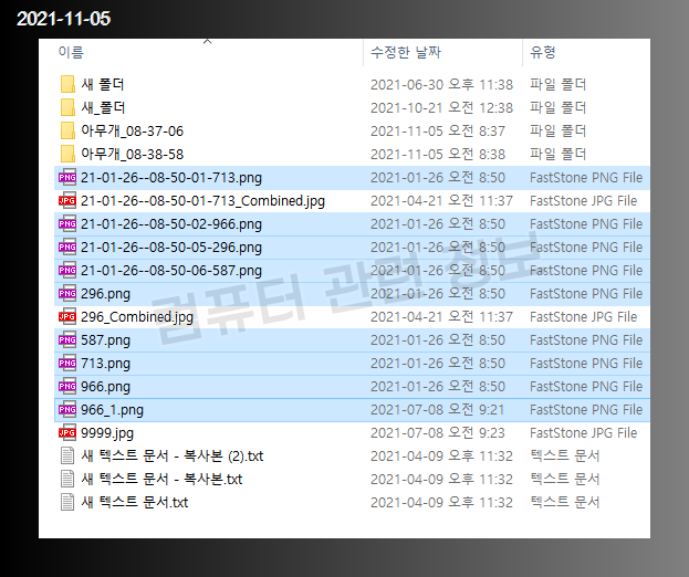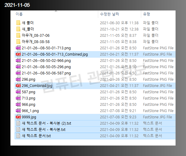 그리고 특정 확장자의 파일만 선택하려면 확장자로 검색을 하던가 탐색기 확장자 유형 열에서 해당 확장자를 필터링해서 선택을 해야 되는데 사용하기가 많이 불편합니다.