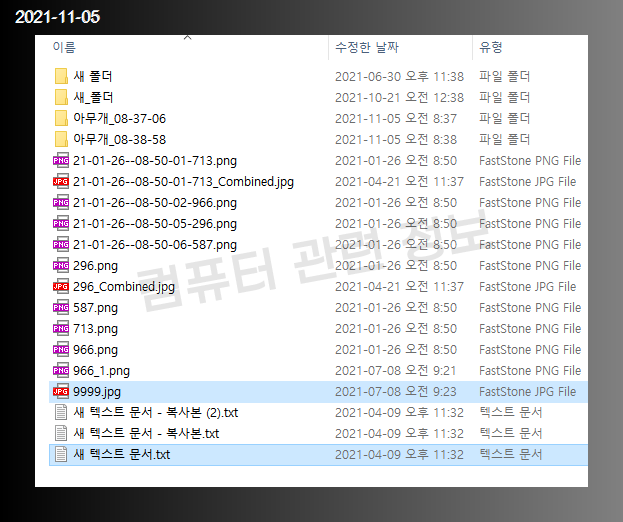 예) exe txt png jpg 선택시 동일한 확장자 모두 선택
