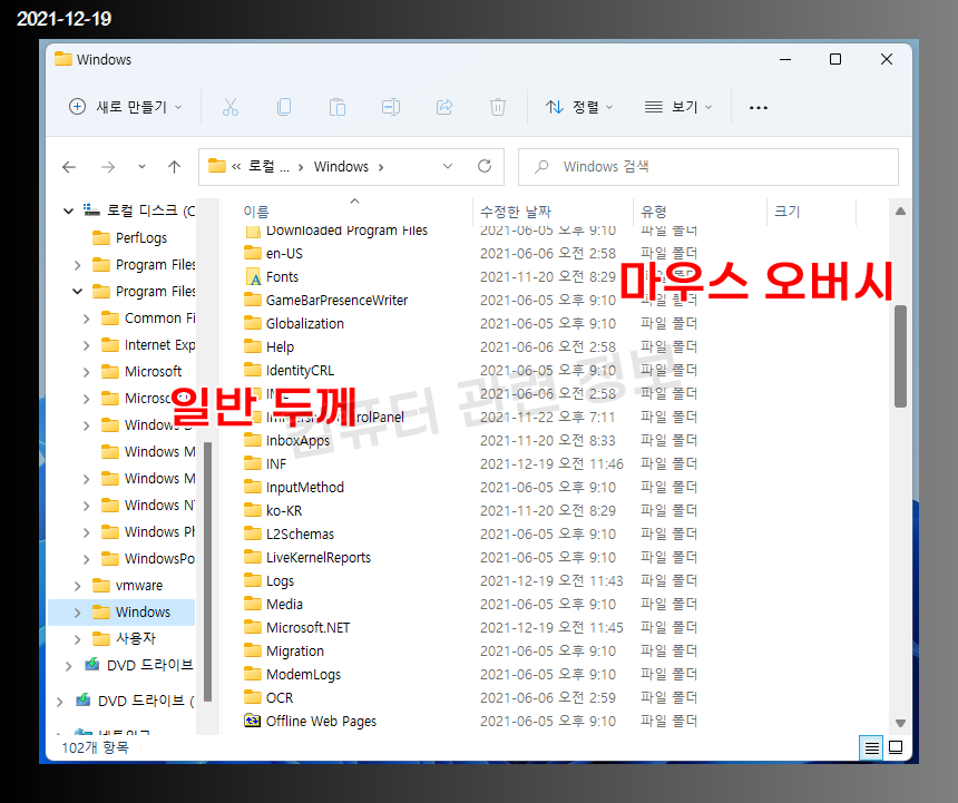 재부팅을 하면 탐색기의 스크롤바 크기가 변경된 것을 확인할 수 있습니다.