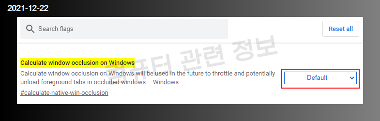크롬 주소창에 chrome://flags/#calculate-native-win-occlusion 복사하고 붙여넣기하세요.