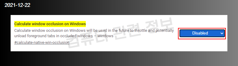 마이크로소프트 엣지의 경우 edge://flags/ 로 가서 Calculate window occlusion 를 검색하고 변경하시면 됩니다.