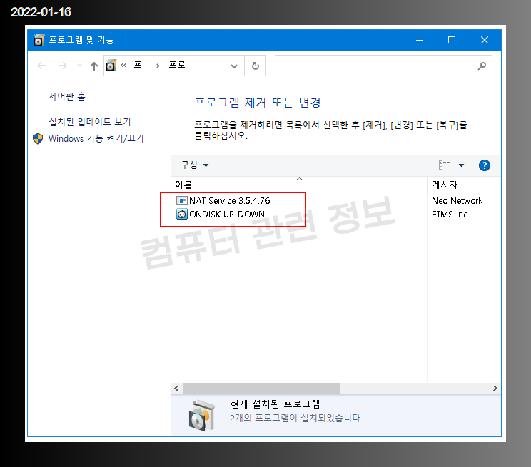 프로그램을 완전히 제거하려면 제어판 - 프로그램 제거 / 변경에서 더블클릭해서 삭제하면 됩니다.