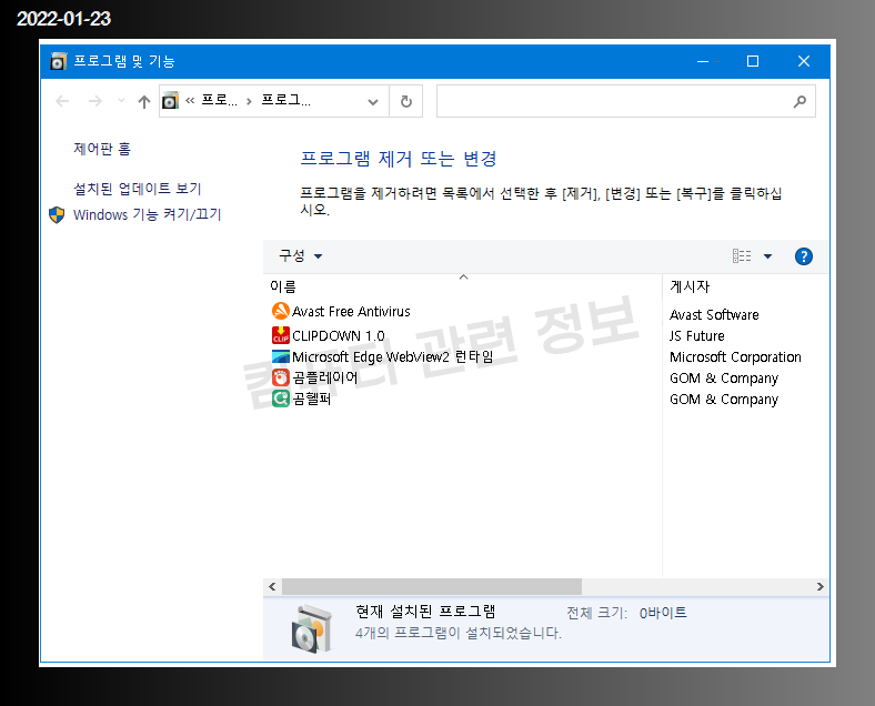 모든 프로그램이 설치된 이후 제어판 - 프로그램 제거 변경에 등록된 프로그램입니다.
