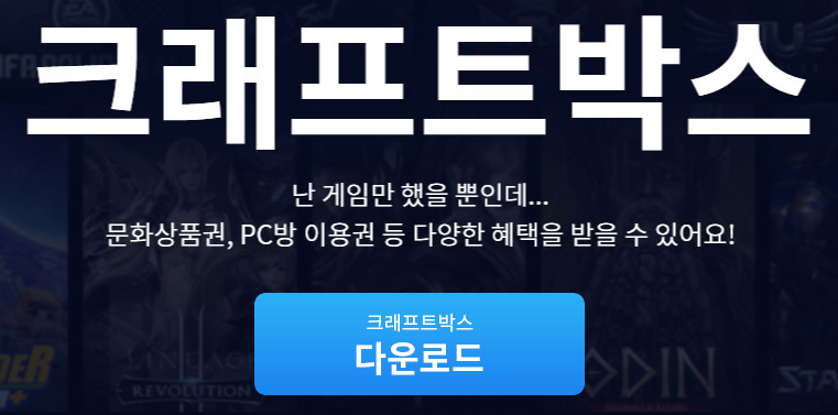 크래프트박스는 문화상품권 및 PC방 이용권등을 사용할 수 있는 프로그램으로 소개하고 있습니다.