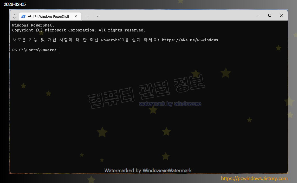 잠시 기다리면 파워쉘 명령어 입력을 할 수 있는 화면이 나옵니다.