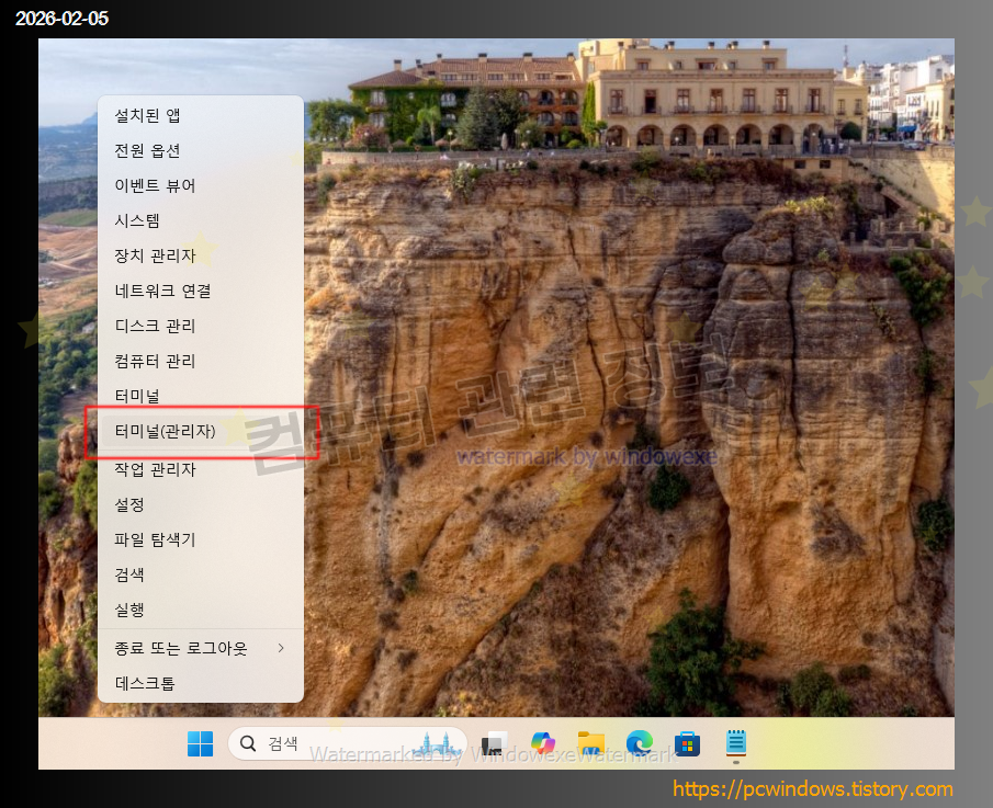 자동 인증 파일 다운로드가 안 되는 경우 시작 메뉴에서 우클릭을 하고 터미널(파워쉘) 관리자를 실행하세요.