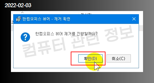 마지막으로 프로그램 제거 확인 메세지를 물어봅니다. 확인을 클릭하면 프로그램이 삭제됩니다.