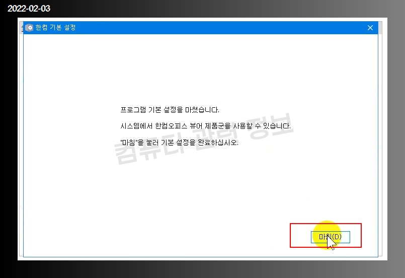 프로그램 설정이 완료되었습니다. 마침을 클릭하세요.