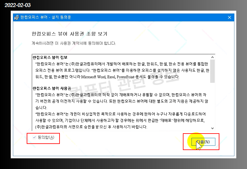 다운로드 받은 파일을 실행하세요. (뷰어 치고는 용량이 꽤 큽니다.)