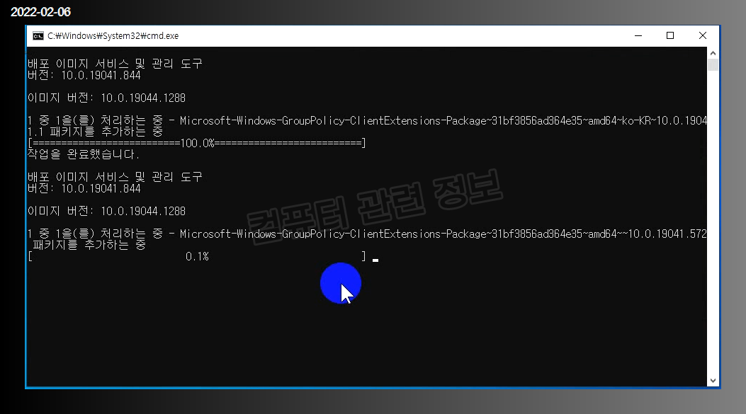잠시 기다리면 작업이 완료되었다고 나옵니다. 창은 닫으시면 됩니다.