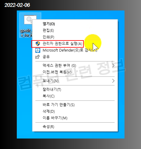 다운로드받은 파일을 마우스 우클릭해서 관리자 권한으로 실행을 클릭하세요.