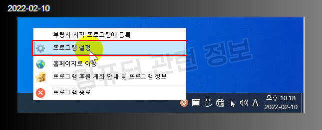 작업표시줄 오른쪽 시스템 트레이에 GPS 모양의 아이콘이 생깁니다. 마우스 우클릭해서 설정을 누르세요.