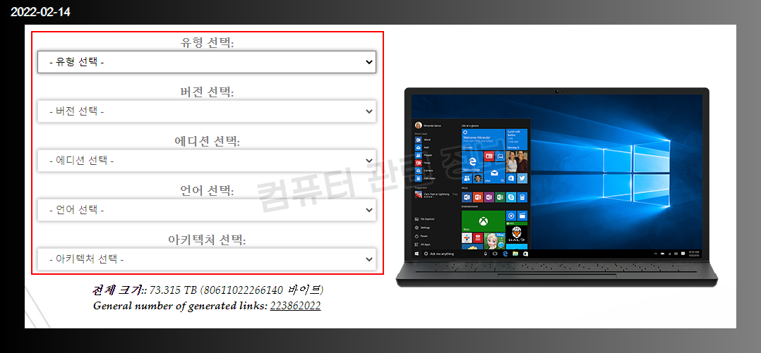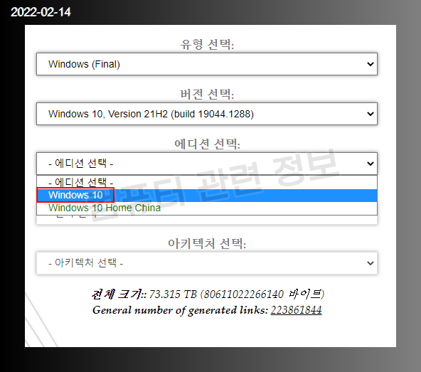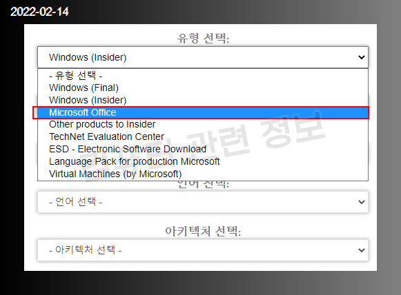 다운로드가 가능한 윈도우 및 오피스 버전입니다. 2022년 2월 14일 확인