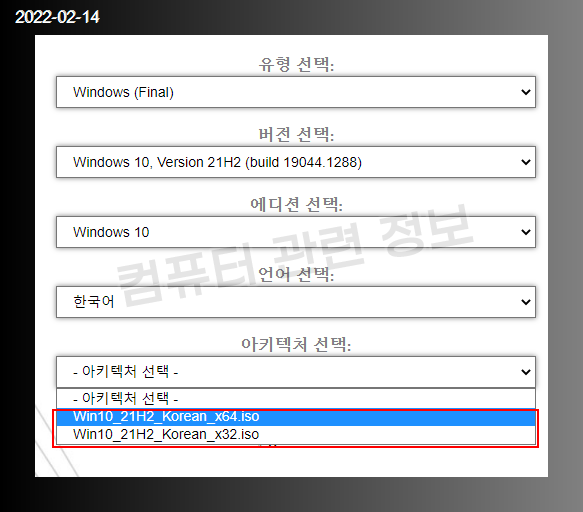 아키텍처를 선택하세요. 일반적으로 64비트를 많이 사용합니다.