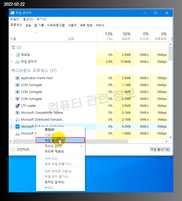 작업관리자에서 프로세스를 종료하는 방법말고 좀더 간단한 방법이 있는데요.