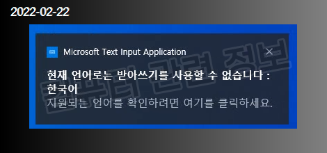 MicroSoft Text Input Application(TextInputHost.exe) 프로세스가 실행이 되고 아래의 알림 메세지가 표시되는데요.