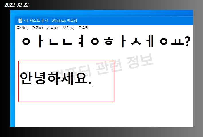 작업관리자는 닫으시고 다시 한글을 입력해보면 정상적으로 입력이 되는 것을 확인할 수 있습니다.