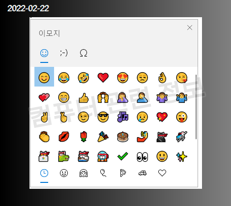 윈도우키 + .(점)키를 누르면 이모지창이 나옵니다.