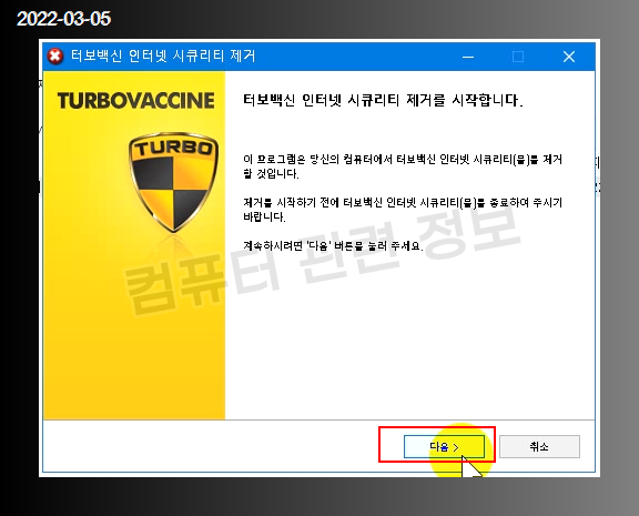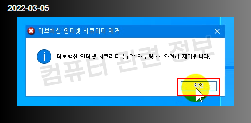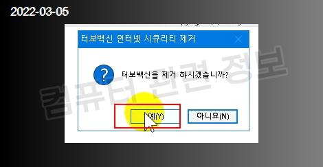 터보백신 인터넷 시큐리티를 더블클릭하면 프로그램을 삭제할건지 물어봅니다.
