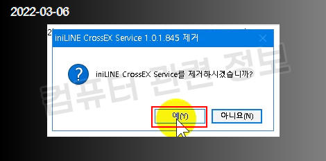 프로그램을 삭제할건지 물어보는데 예 클릭.