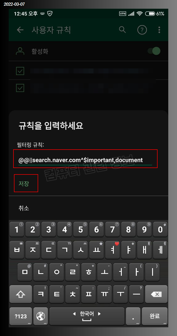 사용자 규칙이 추가되고 설정이 바로 적용됩니다.