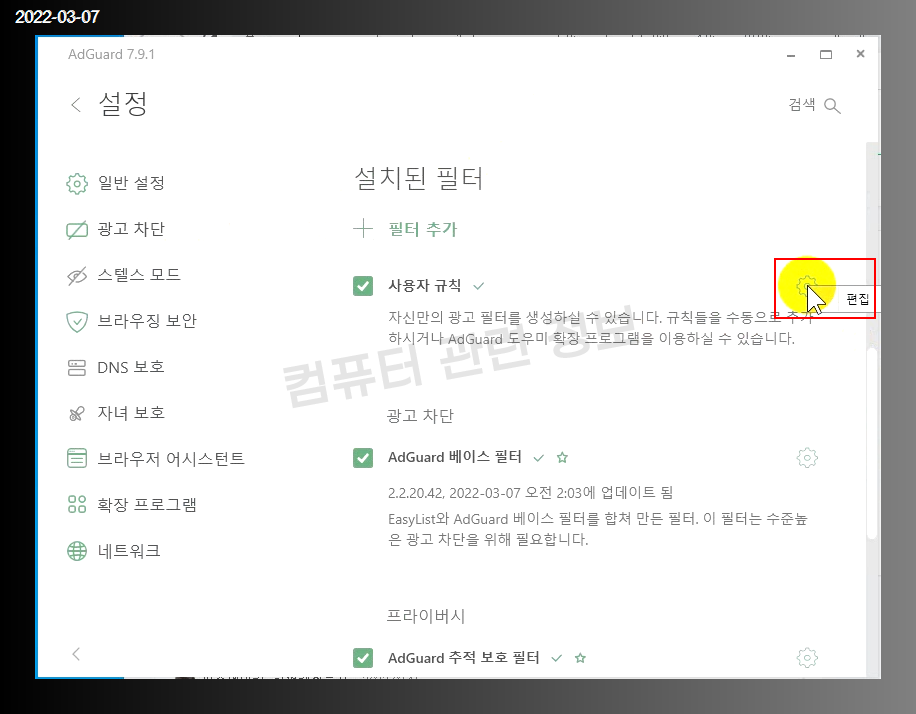 1. 컴퓨터용 애드가드 설정방법