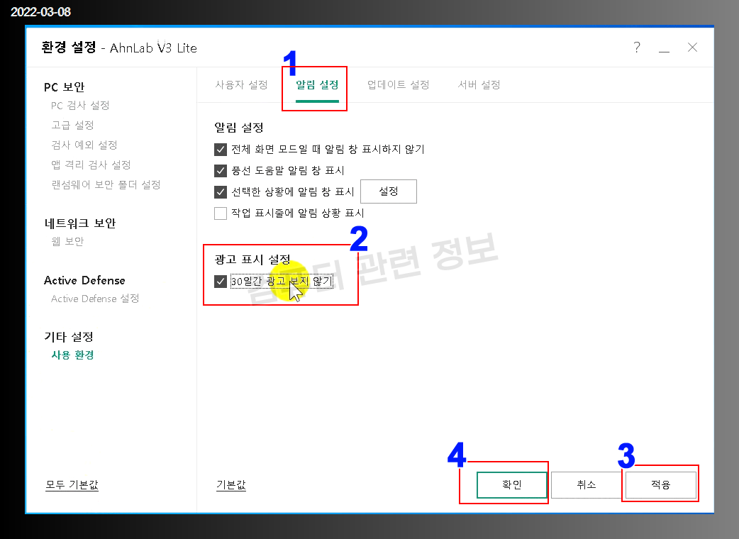 안랩 V3 Lite 백신 프로그램을 사용하게되면 가끔가다 팝업광고가 뜹니다. 환경설정에서 광고를 숨기는 방법에 대해서 알아보겠습니다.