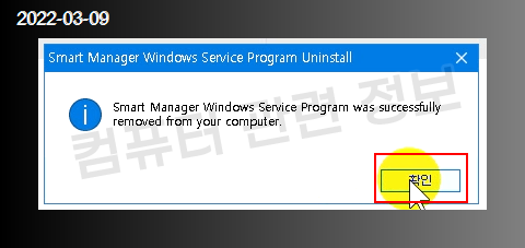 프로그램이 삭제되었습니다. 확인 클릭.