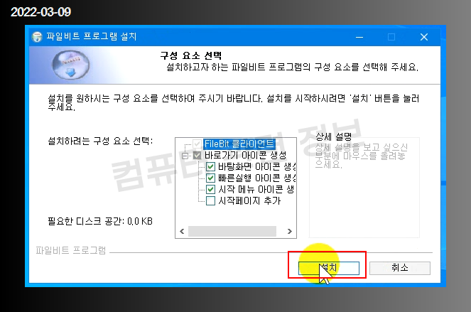 파일을 실행해보겠습니다. 설치 클릭.