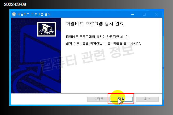 프로그램 설치가 완료되었습니다. 마침 클릭.