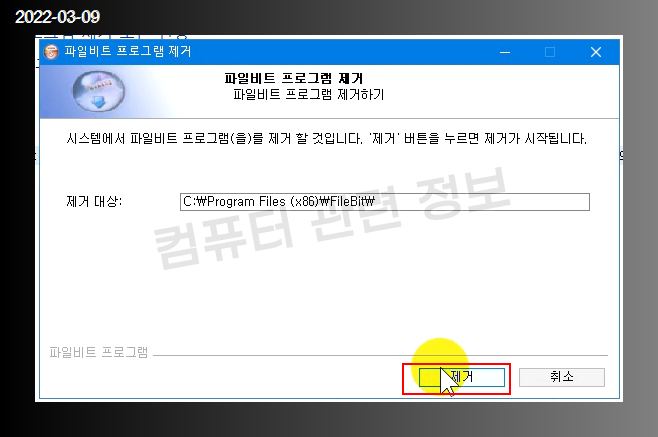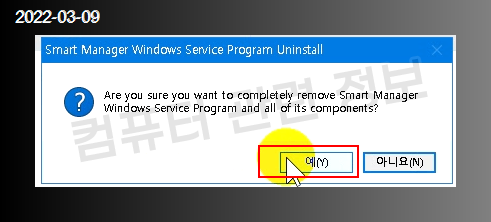 프로그램을 삭제할건지 물어보는데 예 클릭.