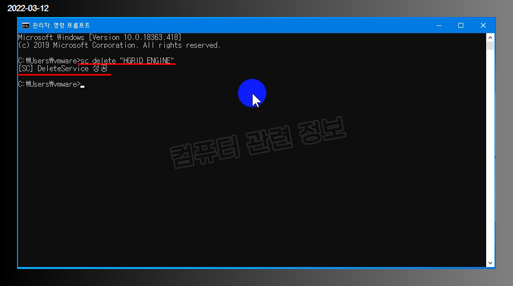 DeleteService 성공이라는 메세지가 나오면 정상적으로 삭제가 된겁니다.