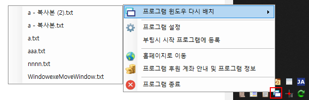 이 기능을 프로그램 윈도우 다시 배치 메뉴로 변경하였습니다.