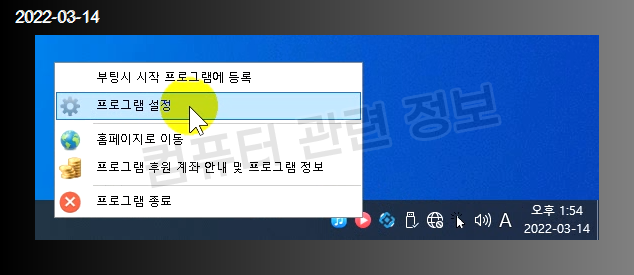 마우스 우클릭하고 프로그램 설정을 클릭하세요.