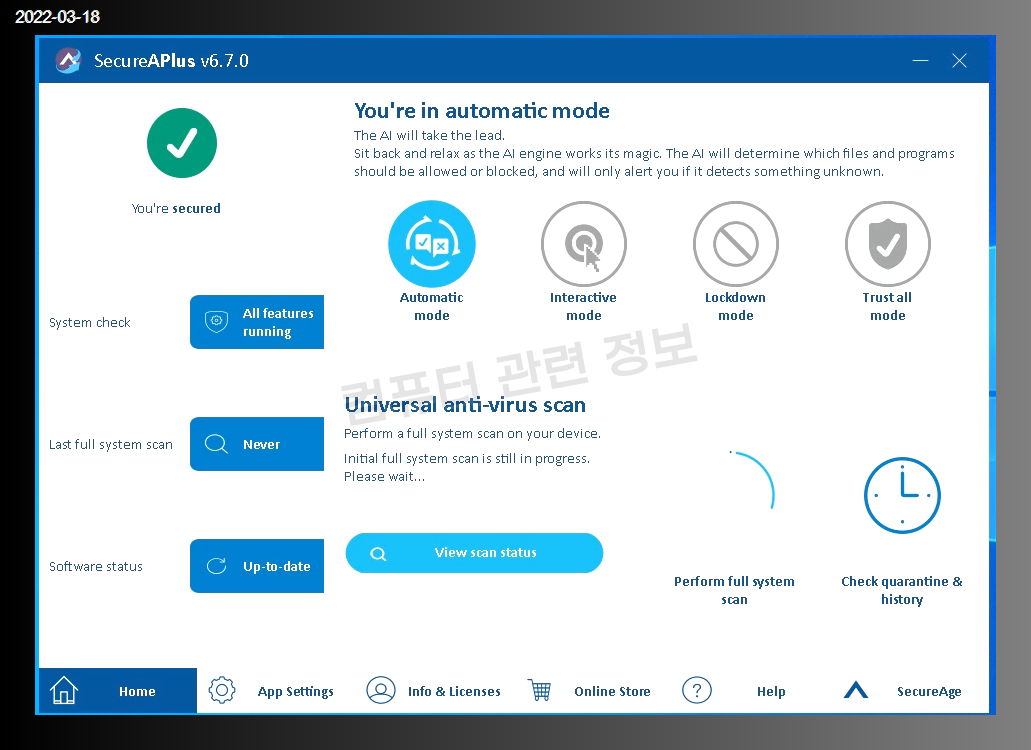 많이 알려져 있는 프로그램은 아니지만 멀웨어 차단 프로그램, SecureAPlus 설치 및 삭제, 프로세스 정보에 대해서 자세히 알아보겠습니다.