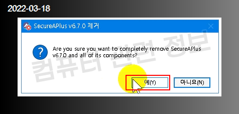 프로그램을 삭제할건지 물어보는데 예 클릭.