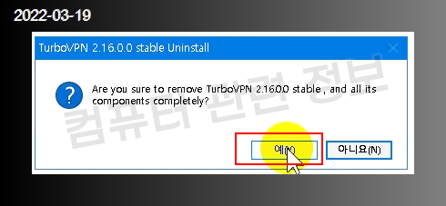 프로그램을 삭제할건지 물어보는데 예 클릭.